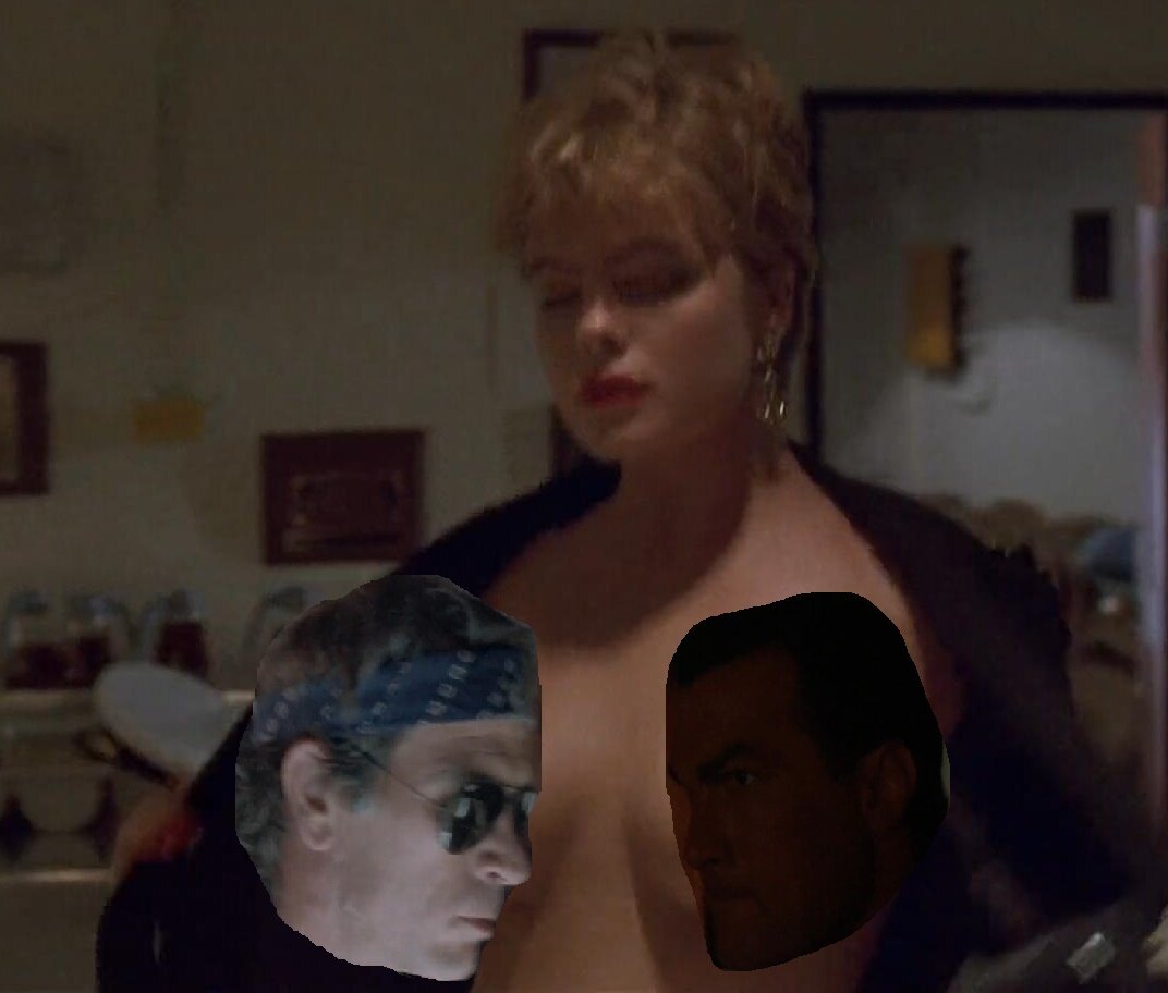 Мощным игривым и завлекающим, искромётным танцем врывается в гулянку долгожданная, обожаемая всеми вместе и каждым в отдельности, обладательница вожделенного бюста. Но сразу обнаруживается конфуз. Кто - то с ужасом и осуждением, кто - то с радостью и восторгом понимают, что в образе "мадам сиськи" к ним пожаловал старпом. И с этим же сюрпризом он отправляется к капитану. Один из поваров подходит к двум серьёзной наружности военным и интересуется, куда это подевали его шефа Райбека. На что получил ответ, что шеф заперт в холодильнике до конца вечеринки. Повар возмущается: - It's only like 40 degrees in there. Понятно, что в холодильнике не жарко. Об этом и говорит повар. Но только цифру он приводит немного большеватую - 40 градусов. Именно так переводится выделенная фраза. Но знающие, понимающие люди уже догадались, что речь идёт о шкале измерения температуры Фаренгейта. А в пересчёте на шкалу Цельсия, которой пользуемся мы, это будет примерно 4,5 градуса. Полагаю,