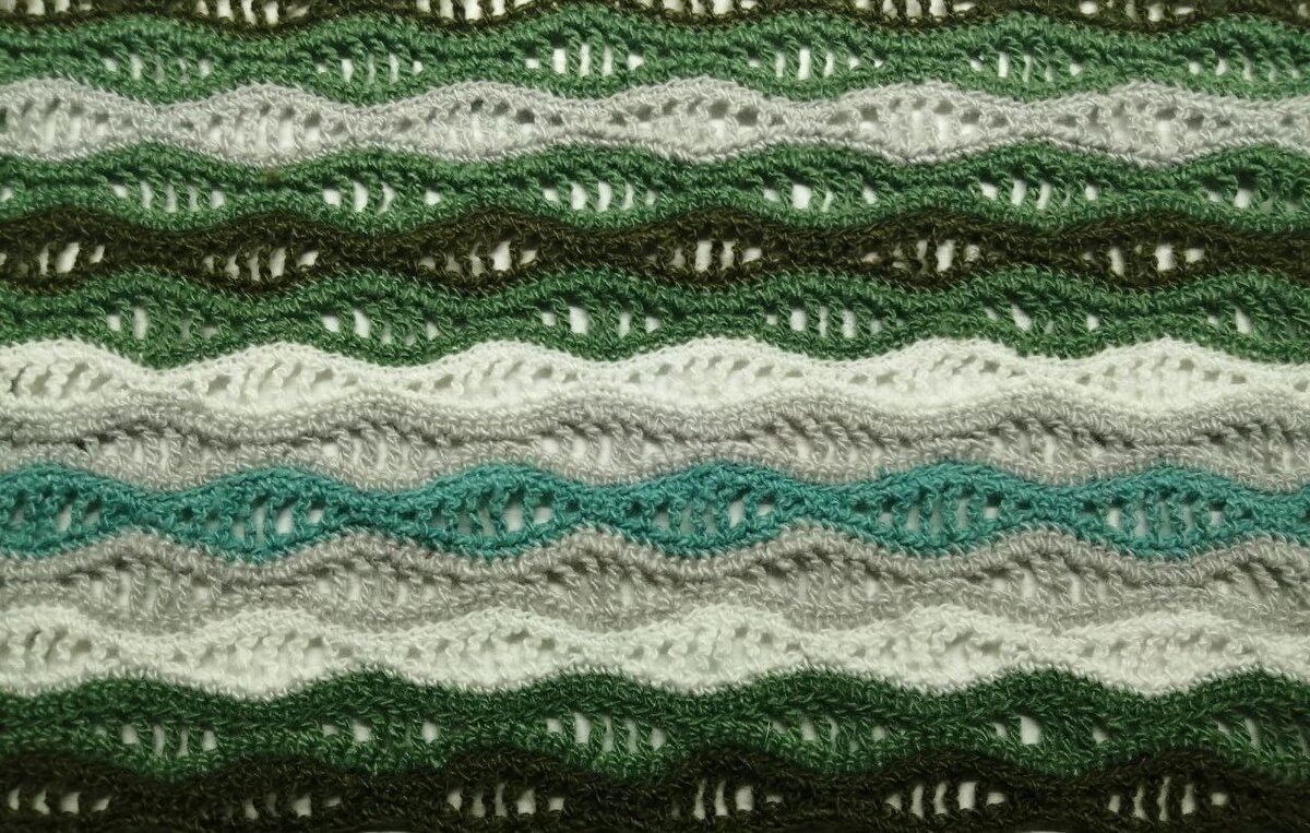 Ажур Миссони — это всегда зигзаг и сочный цвет. Игра на контрасте тонов. Есть и разновидность ажура более плавная, которую ещё называют волнами.
