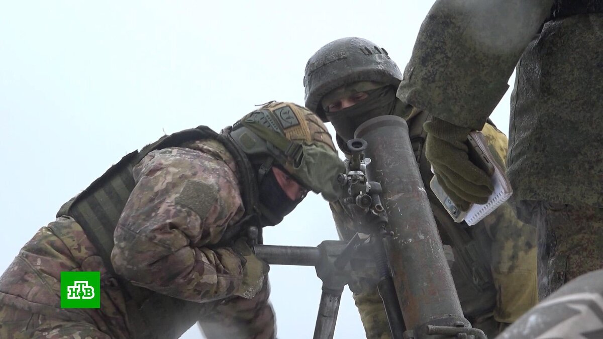 [ Смотреть видео на сайте НТВ ] На Южно-Донецком направлении по противнику работают российские минометчики. Они атакуют скопления техники украинских нацформирований и помогают продвижению наших армейский подразделений. На Южно-Донецком направлении артиллеристы помогают продвижению других армейских подразделений. Минометчики с дистанции могут поставить дымовую завесу для наступления или отхода пехоты. Работа артиллерии не позволяет противнику успешно наступать. На приведение миномета в состояние боевой готовности требуется около минуты. Пока снимается маскировка, идет наводка, на мины повязывают белую ткань — это пороховые мешки, от их количества зависит дальность полета. Первый выстрел обычно пристрелочный. В условиях непогоды, которая установилась на Южно-Донецком направлении, корректировать дальнейшую работу приходится только с земли, поднять в небо беспилотник невозможно. Но отсутствие коптеров — не помеха для минометчиков из Забайкалья. Забайкальские артиллеристы — одни из первых ц