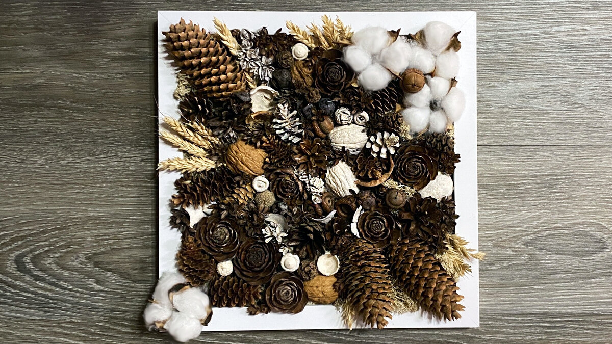 Природные материалы - это не только экологично, но и чрезвычайно модно в современном дизайне интерьера. Все больше и больше людей отдают предпочтение таким материалам, чтобы добавить стильности, оригинальности и уникальности своему пространству. Хотите знать о неповторимом способе создания панно из природных материалов? Тогда прочитайте эту статью! Создание панно – это настоящее творчество. Чтобы сделать такую картину, вам понадобятся некоторые материалы и инструменты. Однако, самое главное здесь – ваша фантазия и креативность. Мне понадобились: Для начала, необходимо подготовить раму, которая будет служить основой для панно. Если не нравится цвет рамы, можете ее перекрасить. Также я покрасила некоторые элементы светлой краской, чтобы декор не сливался. Главное она должна быть глубокой, чтобы декор не сильно выступал наружу. На подложку наклейте лист фетра - к нему лучше будет приклеиваться декор. Теперь самое интересное – приклеивание декора на фон рамы. Для начала разложите самые кру