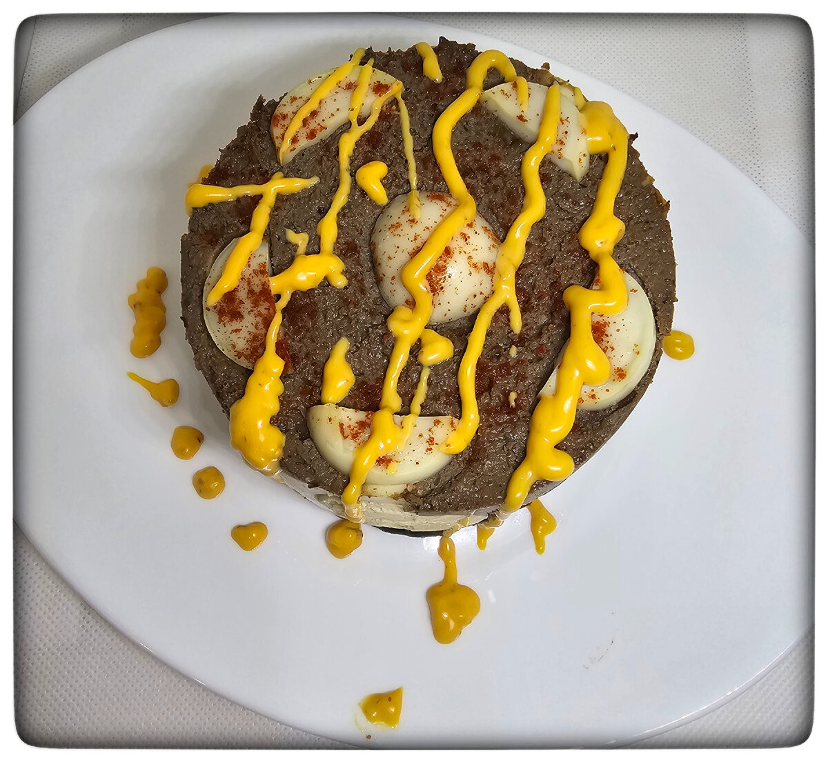 Тортик без коржей и не для сладкоежек. Печеночный тортик, это блюдо, которое готовится из говяжьей печени с добавлением овощей и специй. Он получается нежным, сочным. Такой торт можно подать на праздничный стол или просто приготовить для семейного ужина. Нам понадобится говяжья печень или куриная 500 г, морковь - 1 шт., лук - 1 шт., соль, специи по вкусу, свежемолотый перец 0,5 чайной ложки, сливочное или топленое масло - 1 столовая ложка, 2 отварных яйца, стручковая фасоль или другие овощи. Печень вымыть, освободить от пленок, нарезать произвольно. Лук очистить, нарезать кубиками и положить пассероваться на сковороду, в которую добавили топленое масло. Морковь помыли, почистили, нарезали тонкими брусочками и отправили к луку, на сковороду. Когда овощи станут прозрачными, положить в сковороду печень, добавить любимых специй, посолить. Пока печень тушится, отварим яйца. Тушим печень недолго, т.к. ее будем еще запекать. Дно кондитерского кольца укрыть фольгой. Печень измельчить погружн