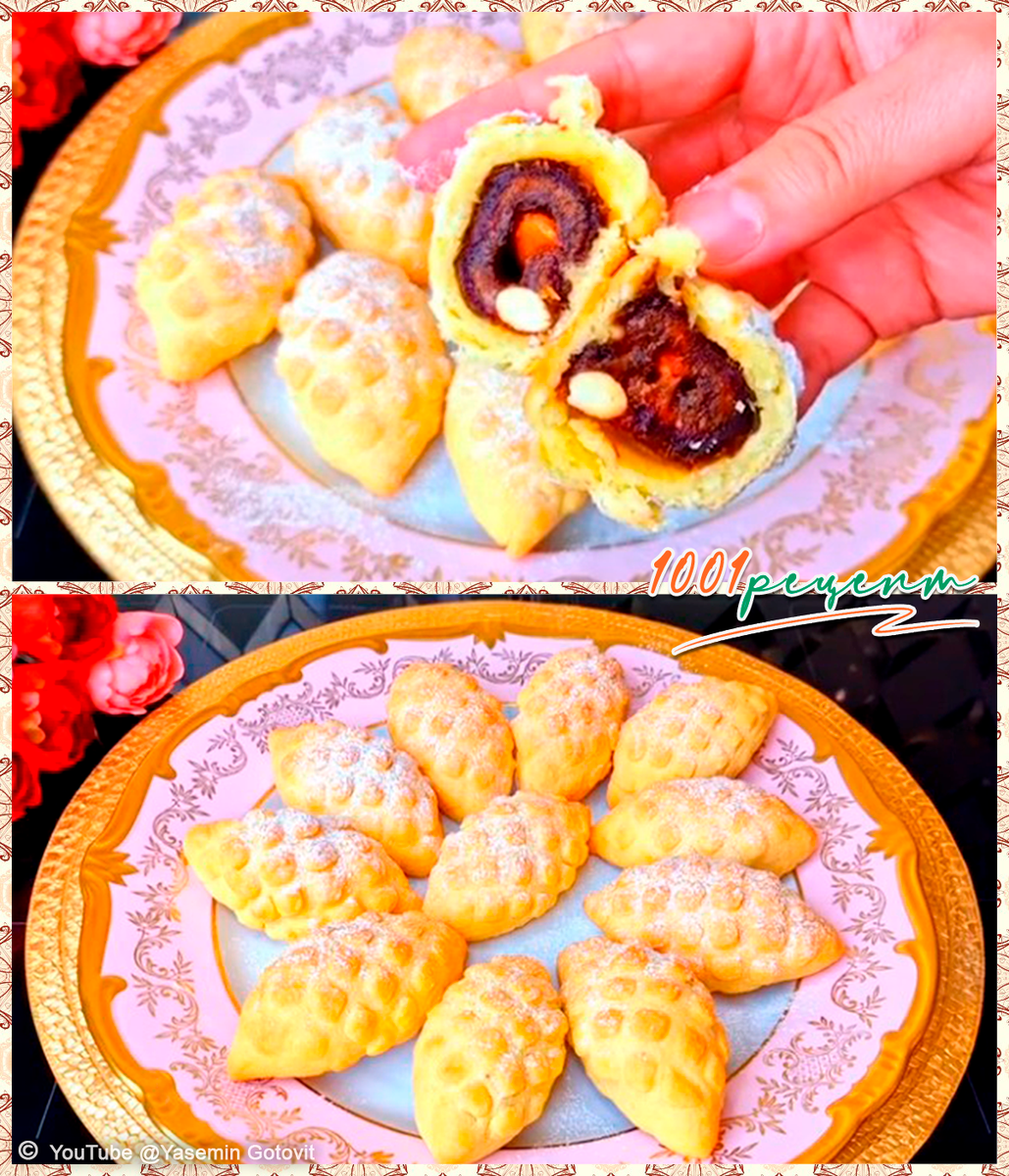 Потрясающий десерт к новогоднему (и не только) праздничному столу, который невероятно просто и легко приготовить. Печенье получается очень вкусным, у него нежное, рассыпчатое тесто и сладкая начинка из фиников с орешками. Печенье «Шишки» из песочного теста с начинкой из фиников и орехов к празднику можно испечь заранее — оно довольно долго хранится, а можно подарить его в качестве сладкого подарка. Ингредиенты 🔸Мука пшеничная - 300 гр 🔸Масло сливочное - 100 гр 🔸Соль 1 щепотка 🔸Сметана 20% - 100 гр 🔸Яичный желток - 2 шт 🔸Разрыхлитель - 1 ч.л (без верха) 🔸Финики - 12 шт 🔸Миндаль сладкий (или грецкие орехи) - 100 гр Дополнительно 🔸Сахарная пудра Как приготовить печенье «Шишки» с начинкой В миску просеиваем муку и добавляем сливочное масло комнатной температуры. Перетираем руками в крошку. В крошке делаем углубление и добавляем соль, яичные желтки, сметану и разрыхлитель. замешиваем мягкое, не липнущее к рукам песочное тесто. Тесто заворачиваем в пакет и даем отдохнуть 15 мину