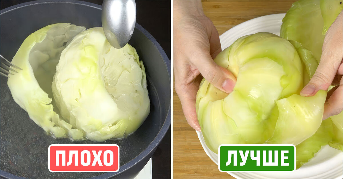 Тещины голубцы — любимое блюдо моего мужа. Щедро залив свою порцию домашней сметаной, он уплетает один за другим после работы. Хорошо, что моя мамочка привезла запас замороженных голубцов: могу доставать, сколько нужно, хоть через день. Не надоедают. Даже рассказала, как варить капусту для голубцов, на случай, если меня посетит вдохновение. Не подумайте, я умею готовить голубцы! Просто иногда возникают проблемы то с сухим фаршем, то с жесткой капустой. Как сделать мясной фарш для голубцов идеально сочным и вкусным, вы узнаете по ссылке. А что касается капусты и ее приготовления, читайте ниже! Как сделать капусту мягкой, идеальной для голубцов Существует несколько простых способов, которые помогут решить проблему жесткости капустных листьев. Среди них такие: Правильный кочан капусты Обращайте внимание на кочаны небольших размеров. Конечно, лучше всего подходит для приготовления голубцов молодая капуста. Но и со старой можно работать, если срезать все жесткие части. Прежде чем использова