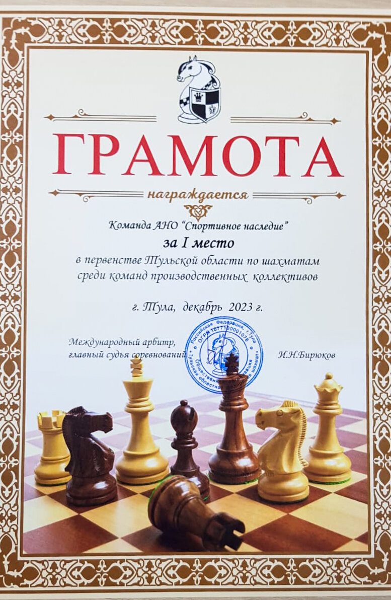 По итогам первенства щекинская команда – АНО «Спортивное наследие» – признана лучшей. Она заняла первое место, была отмечена грамотой и кубком. Они были вручены руководителю Щекинского шахматного клуба Максиму Новикову.