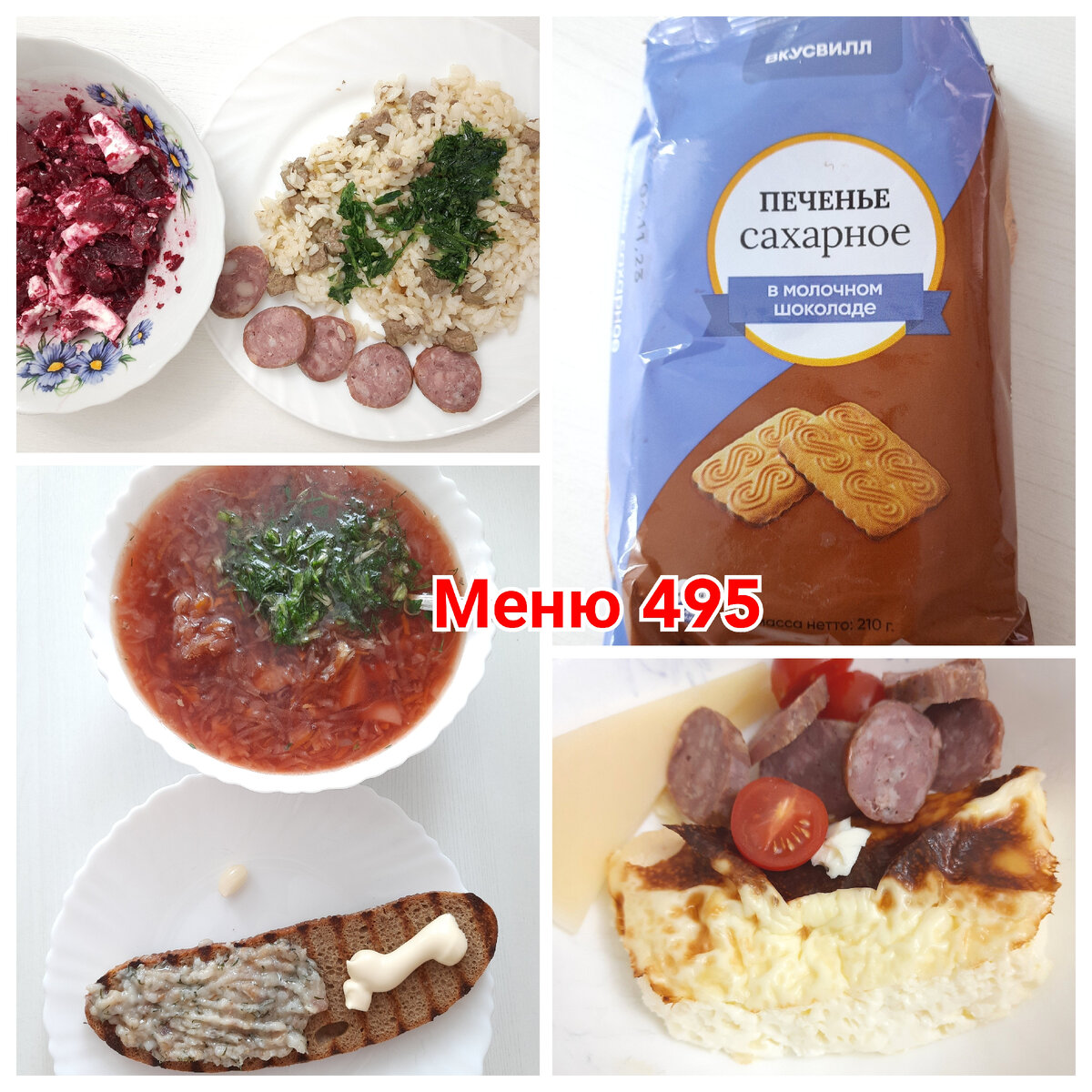 #Завтрак – снова с вечера сделала «омлет как в садике» из этой статьи: Это просто идеально быстрый завтрак! Просто погреть в микроволновке и все готово))) Омлет не сильно опадает, так что и утром он будет пышным! А почему готовлю с вечера? Потому что запекать в духовке его нужно 40 минут))) Но об этом все подробности и нюансы в той статье! К омлету – фермерская колбаса из дня 494, помидорки черри и сыр. #Обед – борщ, мой любимый борщ! С зеленью. Дарницкий хлеб со шпиком от фермера (тот же день 494), вторая половина хлеба с майонезом. И чесночок. У нас холодина, и дома в том числе! На улице -30! И в такую погоду сало в разных вариациях заходит просто отлично))) А борщ в этот раз делала на голени и бедре от фермерской курицы (в закупках она у меня еще нигде не попала). Но могу сказать, что как я всегда делала на мелких кусочках филе – мне нравится больше! #Десерт – давно не ездила в Пермь, соскучилась по Вкусвилл. Вот родственники привезли печенье в качестве гостинца - Печенье сахарное