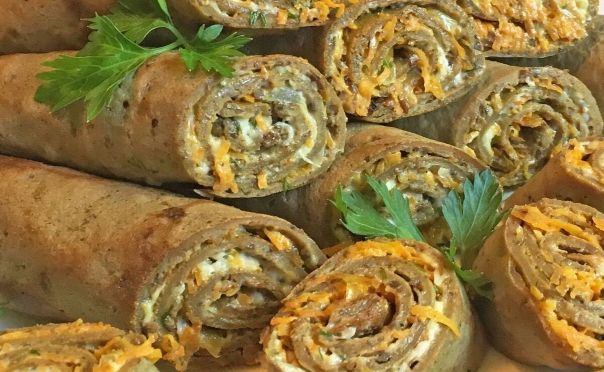 Печёночные рулетики с начинкой из моркови, лука и сыра