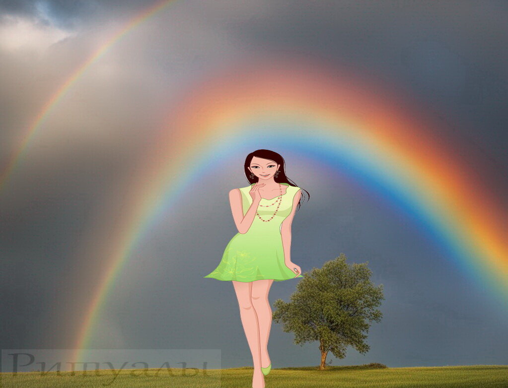 Сегодня поделюсь с вами ОЧЕНЬ сильной защитой. Первый раз защиту эту я ощутила на себе, когда мы, гуляя с Прабабушкой во дворе дома нашего, попали под сильнейший ливень. Было такое впечатление, что ливень этот за 2-3 минуты вылил на нас месячную норму осадков, таким обильным был дождь тем летом. Дождь, который шёл НЕ более 5 минут. Затем выглянуло Солнышко и в небе показалась королевская Радуга!!! Вот тогда, впервые, я стояла под ней. Стояла и свою защиту устанавливала. Защита Радуга 💚💚💚 Я немного адаптировала саму защиту под наше время. Чтобы понятнее было. Хотя, скажу сразу, в её основу (защиты) заложен один из основных законов оптики по смешиванию цветов (хотя, мои родственницы этого и НЕ знали, да и знать НЕ могли. Ведь в то время закона этого ещё никто НЕ открыл!!!). Луна – новая или растущая (идеально) Время – полдень Вам понадобится: 1. Фото или любая картинка Радуги. Та картинка, которая будет вас цеплять изнутри (полная Радуга, коромыслом!!!) 2. Воспоминания ваши (личные) о