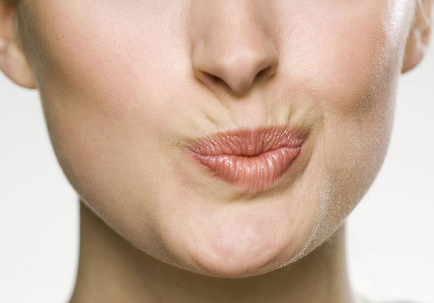 Круговая мышца рта плотно прикрепляется к коже и не фиксируется к костному каркасу. Зона вокруг рта постоянно активна: все это приводит к формированию морщин и заломов в области носогубного треугольника.