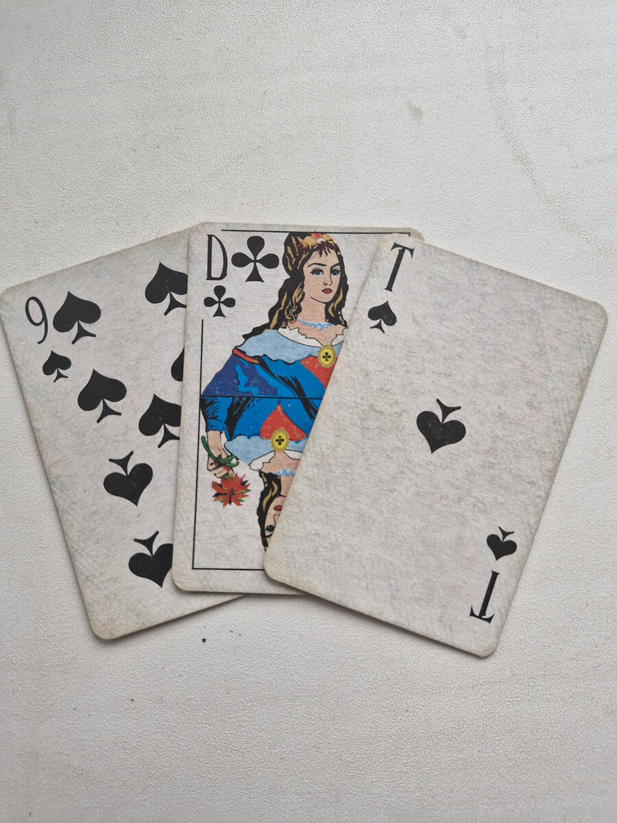 Все карты-живые магические существа. Они могут ссориться и ненавидеть, относиться к людям нейтрально или очень хорошо. Особенно это справедливо это в отношении карт Таро, но даже простые карты никогда не скажут вам правды, если некоторые из них были хоть раз "побиты" в карточной игре. Самые капризные из всех- карты Йеро. Они начинают лгать уже на второй попытке гадания. Именно поэтому на них, как и на костях по Джоусской системе, можно гадать только один раз в день. Обычные карты тоже требуют к себе уважения- гадальные карты нельзя давать в чужие руки, нельзя бросать на видном месте. Их следует хранить в картонной упаковке или светлом льняном мешочке, а раскладывать лучше всего на специальной "гадальной" скатерти. Колоду карт Таро нельзя держать вместе-Младшие Арканы должны находиться отдельно от Старших, иначе она будет привлекать несчастье. Тузы тоже лучше вынуть и пользоваться ими как охранными амулетами- в зависимости от дел, предстоящих на дню, брать с собой туз денариев или бул