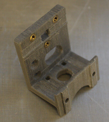 А теперь расскажу про каретку для водянки. Замысел заключался в том, что каретка должна быть перестраиваемой, то есть при обнаружении чего нибудь непотребного, можно было изменить, перепечатать, только часть, а не начинать громоздить новое. Поэтому состоит из 5 частей. Первая,основная, крепящаяся на каретку, бегающую по рельсу. На ней сидит датчик микриковый , вплавлены резьбовые втулки и находятся направляющие для второй, могущей двигаться по Z для быстрой подстройки под покрытие стола (стекло, пластина или просто голый алюминий). Отпустить на половину оборота 2 винта и можно сопло опустить (поднять) прямо на бумажку зазора м-ду соплом и столом. Это проще, чем крутить 4 гайки под пружинами. К этой части снизу двумя винтами и прижимается через прокладку верх водянки третьей частью, являющейся кроме прижима водянки снизу еще и основой для крепления и регулировки четвертой части, блока обдува модели. При ослаблении 1 винта блок обдува можно выставить где угодно по высоте или снять вообщ