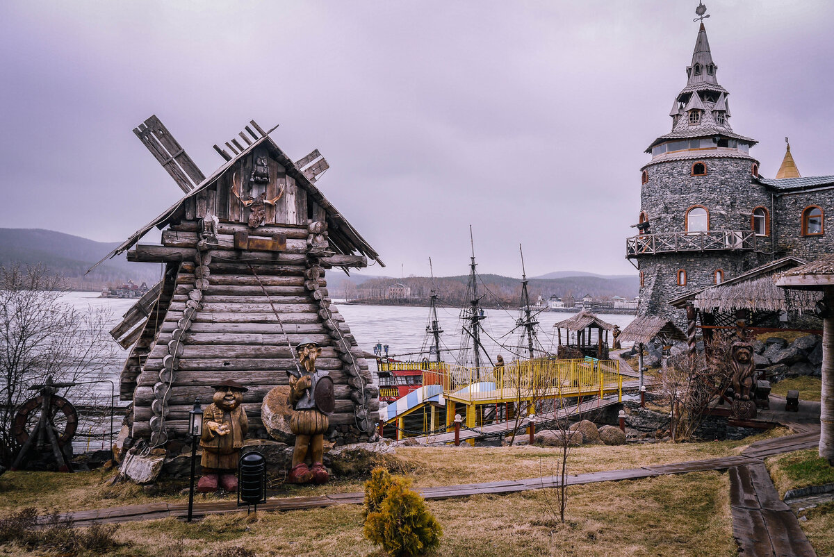 В дороге уже пошел дождь. Но компания собралась очень позитивная такие добрые душевные люди. Погода ни сколько не помешала в дороге. После трех часов езды мы добрались до первой точки сбора. Это был музей «Сонькина Лагуна». Большой парк-музей построенный тут есть здания в старорусском стиле и замки. Удивительное сочетание деревянной церкви, времени князя Ярослава и Европейские замки. Начался сильный дождь.