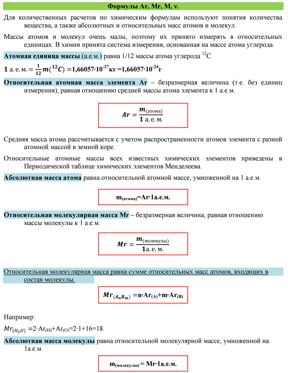 ЛЕКЦИЯ 4. Формулы Ar, Mr, M, ν. Способы определения молекулярных формул.