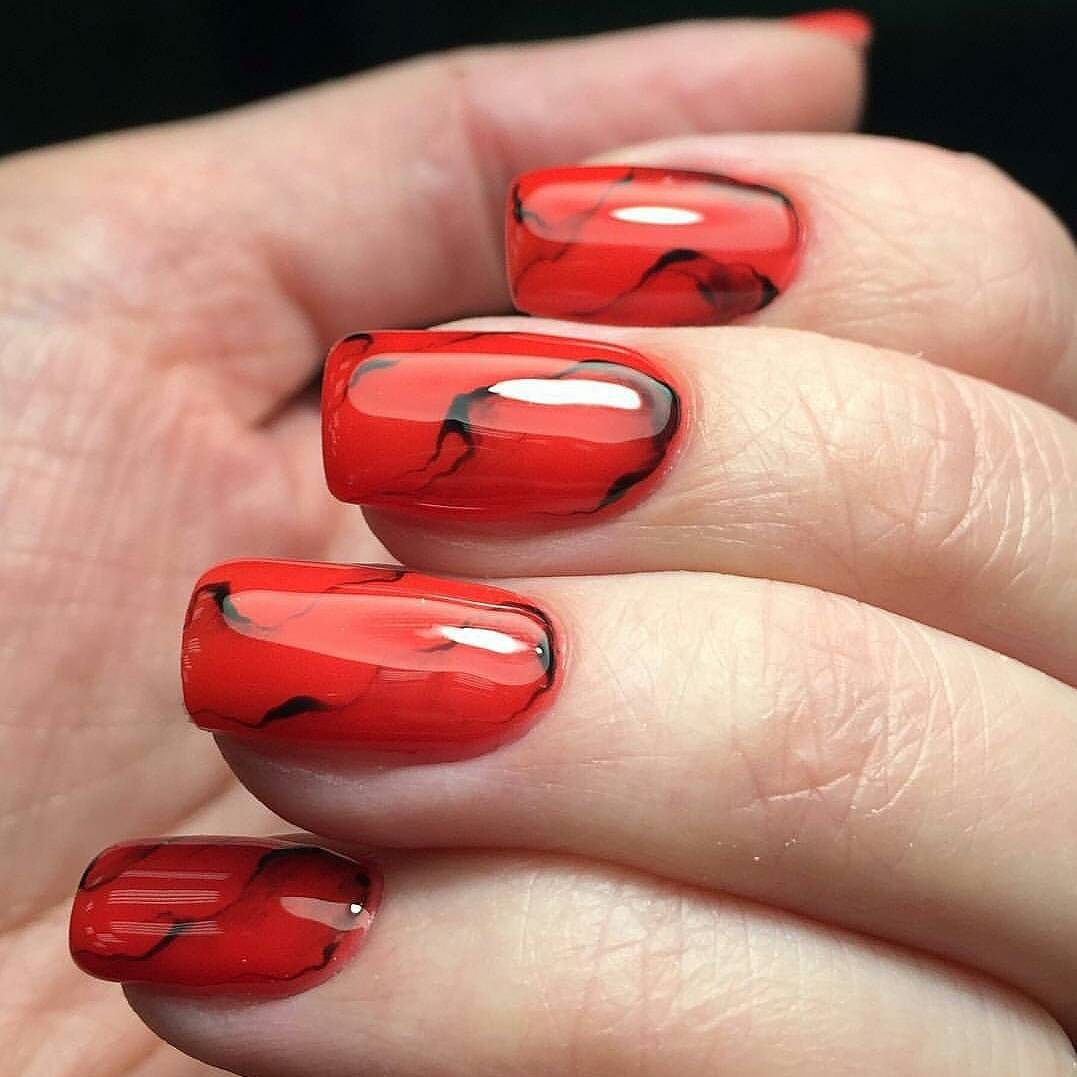 Красный маникюр с эффектом мрамора – это модный и изысканный образ. Мраморного эффекта можно добиться с помощью различных оттенков красного и белого лака, придающих ногтям уникальный и фактурный вид.
