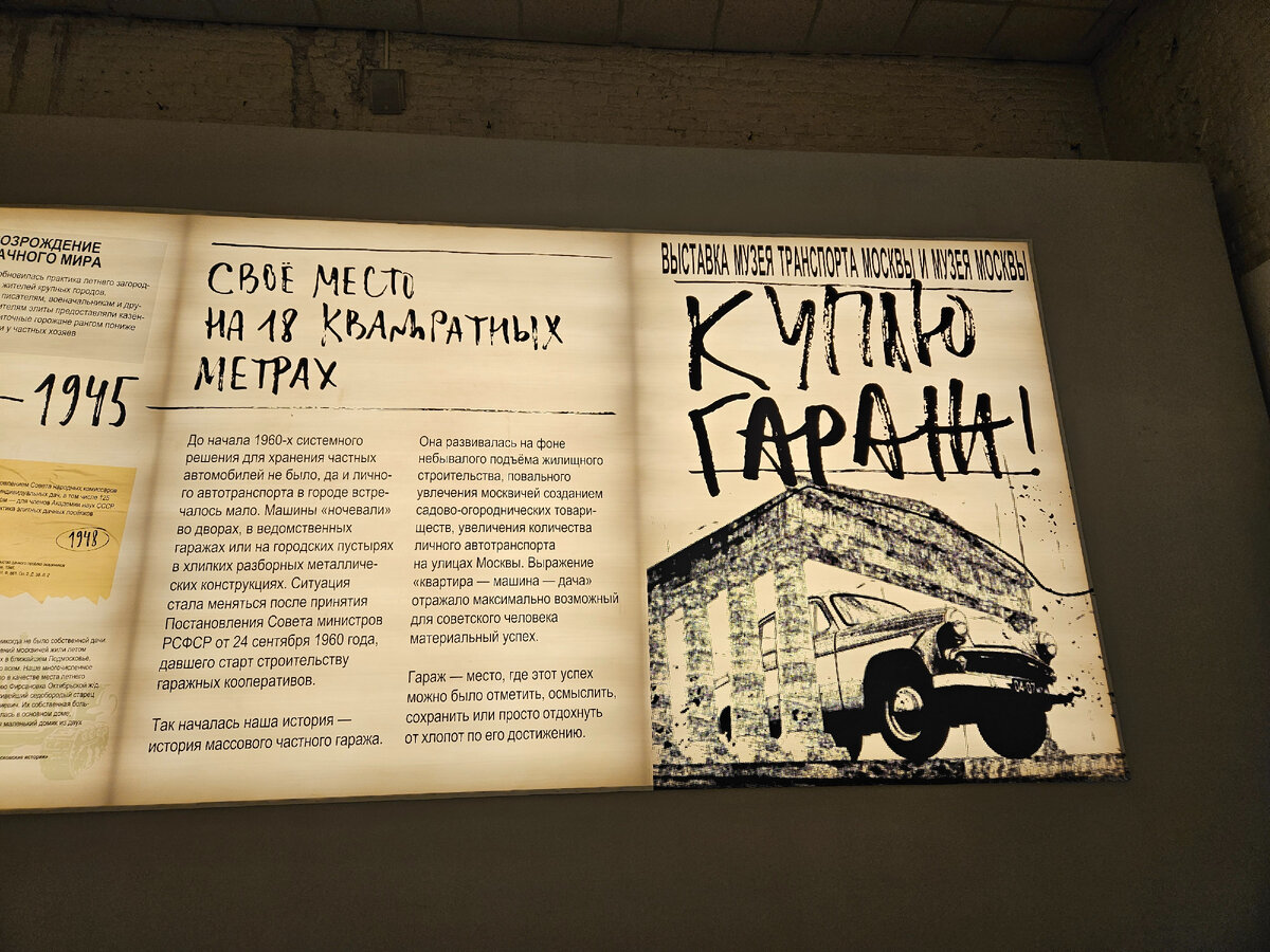 В наше время гаражная культура постепенно уходит из жизни и становится отголоском советского прошлого. Мне стало интересно, как об этом феномене можно рассказать более юному поколению. Поэтому поделюсь своими впечатлениями от посещения выставки Музея Москвы и Музея Транспорта Москвы «Куплю гараж».