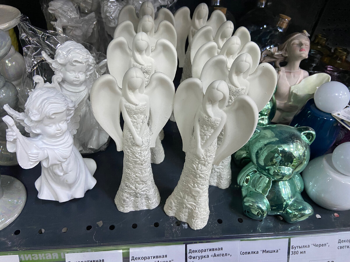 В этом году в магазине «Фикспрайс»появились белые ангелы из гипса.