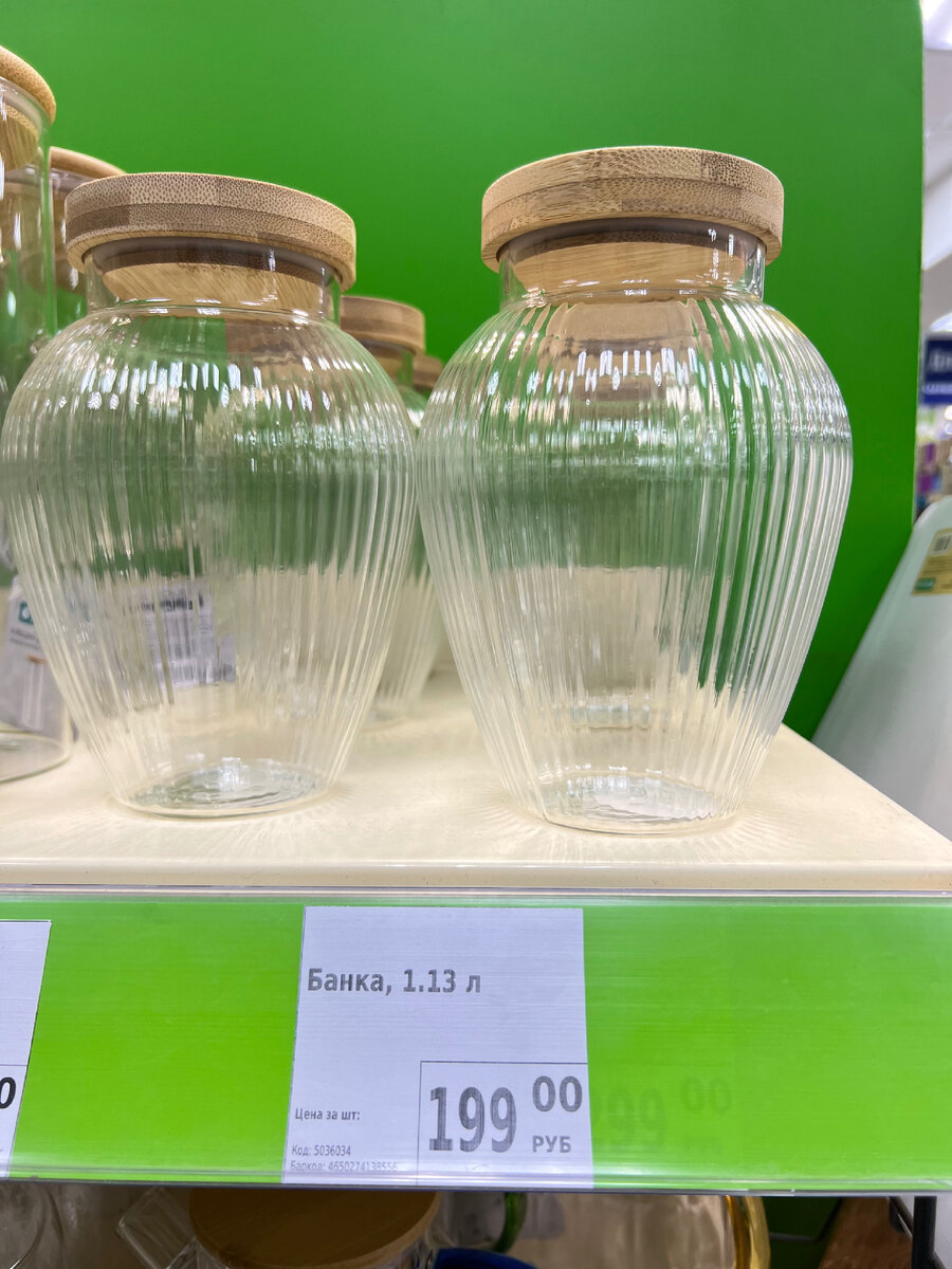 Всем привет! Забегала на днях в Фикс прайс, очень понравилась стеклянная посуда с рифленым дизайном. Ее появилось тут довольно много. Например, вот такие банки по 199 рублей, в них можно хранить кофе или что-то другое сыпучие, оставить прямо на столе, где вы завтракаете или на другом видном месте, т.к. прятать в шкафу такую красоту, думаю, не стоит. Так 👇 Или так👇 В комплект к банком появились и кружки, я бы рекомендовала рассмотреть вариант с янтарной ручкой (фото ее не сделала), хотя может кому-то подойдет и зеленая. Появился графин без ручки и крышки, стекло у него такое же тонкое, как и у банки и кружки, хотя по моим ощущениям кажется даже тоньше, ведь вертикальные полоски у него немного другие, чуть менее выраженные. Меня очаровали и тарелочки, они с интересными узорами и тоже из стекла. Узор четкий и выпуклый, сделан на обратной стороне изделия. Тарелочки разных размеров. Суповые и плоские. Еще один кувшин с крышкой из бамбука, стекло гладкое и тонкое, объем 1,4 литра, цена 299