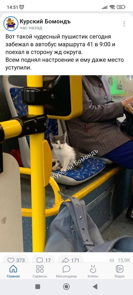 Выбрали не меня, мою подругу. Но каким образом! Не могу не поделиться историей. Утром в местном паблике промелькнула новость. Кошка, в автобусе. Ну бывает. Почитала, забыла. А через несколько часов пишет мне подруга, просит взять кошечку. Маленькая, музыкальная. Себе оставить не хотела, и так в доме 6 кошек и котов (про их появление тоже можно про каждого отдельную историю написать. Но не буду))). И шлёт фото кошки. Понимаю, что это та самая кошка, которая ехала в автобусе. Спрашиваю подробности. Оказывается именно в этот день у подруги сломалась машина и она против обыкновения не поехала в привычный магазин, а зашла в тот который поближе к остановке. А там сидит это чудо возле дверей, орёт во весь кошачий голос и смотрит на всех входящих. Увидев подругу котя поднимается и идёт к ней, продолжая напевать свои песни. Таким образом кошка выбрала маршрут, села в автобус, доехала до конечной, зашла в нужный магазин, сидела звала свою будущую хозяйку, дождалась и встала ей навстречу)) В итог
