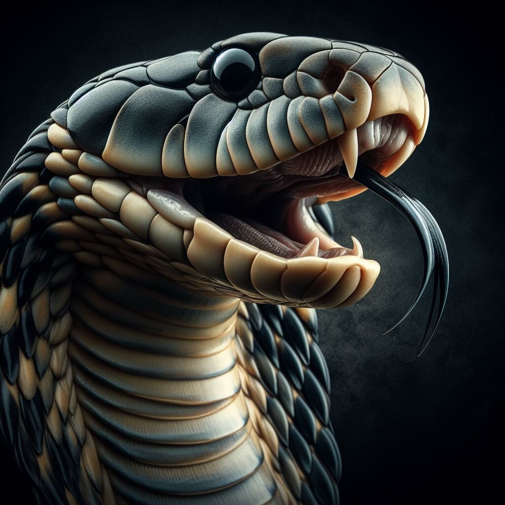 Королевская кобра - это самая длинная ядовитая змея в мире, достигающая до 5,5 метров в длину. Она обитает в тропических и субтропических лесах Азии и питается другими змеями. Ее яд содержит нейротоксины, которые блокируют передачу нервных импульсов, вызывая паралич и остановку дыхания. Одна доза яда королевской кобры может убить 20 человек или одного слона. Королевская кобра обычно не агрессивна и убегает от человека, но если она чувствует угрозу, она может подняться на треть своего тела, раздуть горло и издавать свистящий звук.