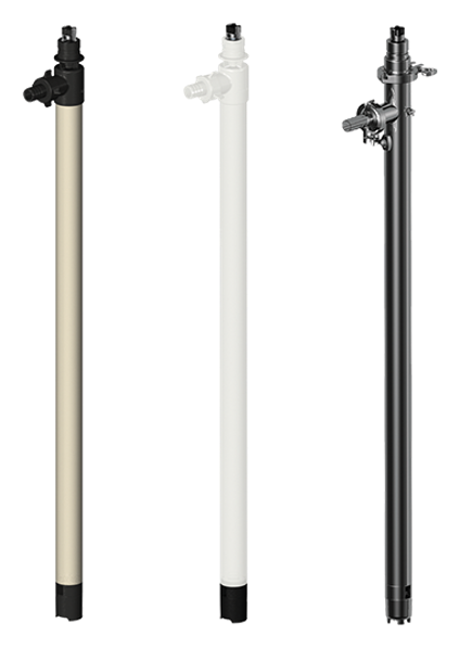 Материалы насосной части: PP, PVDF и нержавеющая сталь. Электродвигатель может быть как общепромышленным, так и взрывозащищенным. Максимальная подача: 150 л/мин (электродвигатель), 80 л/мин (пневмодвигатель). Глубина погружения насосной части: 700 мм, 1000 мм, 1200 мм, особые длины насосов на заказ.