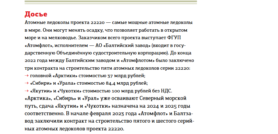 В первом случае речь идёт о поставке стали для ледоколов проекта 22220, во втором — о покрытиях для них. Это крупные компании — выручка Магнитогорского комбината за 2021 год составила 786 млрд рублей, выручка "Антикоррозийных защитных покрытий" за 2020 год превысила 1,5 млрд.