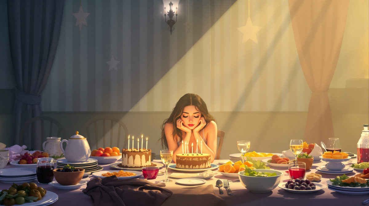 Засыхали салаты, прокисал торт, чернели бананы в вазочке с фруктами. В комнате постепенно темнело. А во главе праздничного стола сидела одинокая фигура.