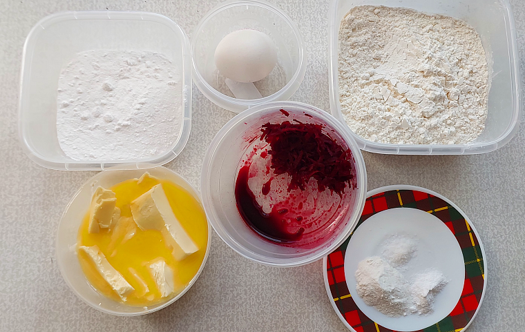 Любите готовить что-то вкусное и интересное? Для вас рецепт необычного печенья. До Нового года остаётся всё меньше и меньше дней. Уже хочется создавать дома предпраздничное настроение, поэтому я решила испечь не просто печенье, а в форме леденца. Делюсь интересным рецептом. Можно готовить вместе с детьми, им точно понравится. Ингредиенты: Приступим к приготовлению. Сливочное масло и яйцо достать из холодильника за 1,5-2 часа, чтобы они были комнатной температуры. В чашу разбиваем яйцо, всыпаем сахарную пудру и взбиваем до светлой пены. Добавляем сливочное масло, хорошо перемешиваем. В муку всыпать разрыхлитель, постепенно начинаем добавлять в яичную смесь. Всыпаем понемногу. Муки может понадобиться чуть больше или меньше. Тесто должно получится мягким, лёгким, не прилипать к рукам, но при этом держать форму шара. Разделяем тесто на 2 части. В одну добавляем сок свёклы, пока тесто не станет розовым. Я не захотела добавлять краситель, добавила свёклу по той причине, что считаю её натурал