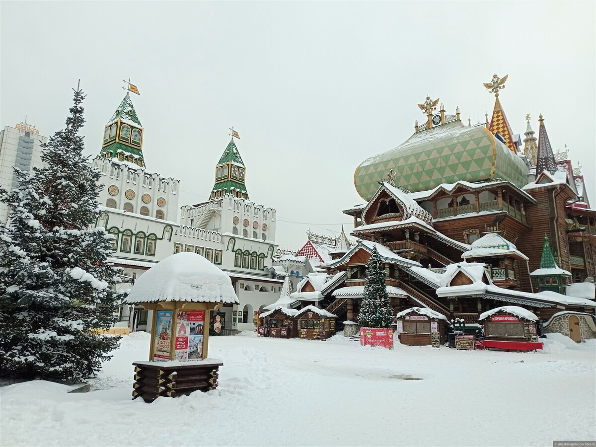 Поездка в культурный комплекс «Кремль в Измайлово» — это отличная возможность окунуться в атмосферу 18 века и увидеть, какой была ремесленная Москва 200-300 лет назад. Белеют на солнце храмы и дворцы, лубяные домики похожи на резные игрушки, а сводчатые залы украшены ручной росписью и сюжетами из русских былин. В предновогоднюю пору Кремль в Измайлово приглашает гостей на интерактивную программу «Русские забавы». В лучших традициях русского зимнего веселья, вас ждут народные игры и гулянья, перетягивание каната и нарядные праздничные хороводы с Дедом Морозом и Снегурочкой. Веселье гарантировано и взрослым, и детям! Натанцевавшись, идем участвовать в мастер-классе по росписи новогодней игрушки — елочный шар, сделанный своими руками, станет главным украшением вашей новогодней елки или прекрасным подарком бабушке с дедушкой!