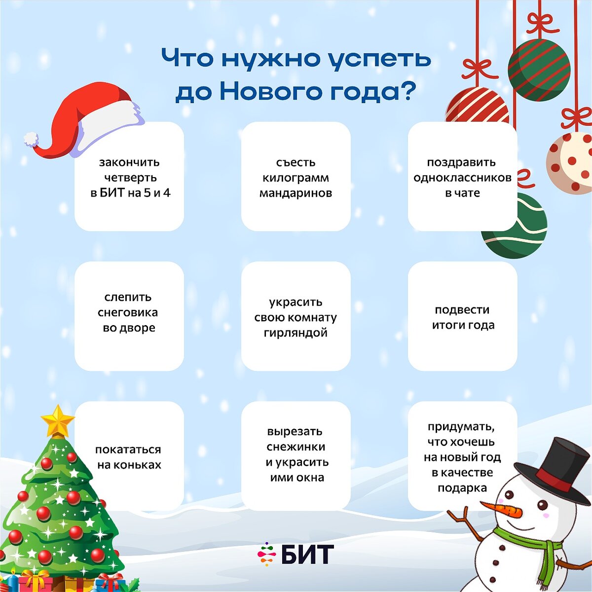 Приближается Новый Год и до него нужно завершить все дела в старом году.Собрали для ребят список дел, которые нужно успеть до Нового Года🎄Делитесь в комментариях, что уже успели сделать?