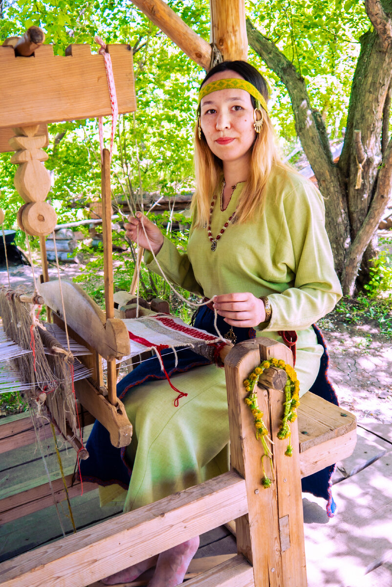 Постановка. Это моя подруга Юлия в народном костюме сидит за ткацким станком. Был очень жаркий летний день. +30с очень много солнца получился рассеяный свет вокруг фигуры Юлии. Белое освещение подчеркивает стройный силуэт. Мы ушли в тень и передвинули под дерево ткацкий станок. На картине мы изобразили - молодая швея за станком. Деревья создают атмосферу! Модель Юлия. Национальность башкирка. Мы дополнили образ бижутерией из коллекции Скифская этника серебро. Конечно модели и фотографу тяжело в такую жару работать. Ткань очень плотная и теплая для лета. Но стоило найти подходящие позировки как на картинах художников. Понравились оттенки зеленого в платье и рядом с моделью. А вот эта постановка в настоящей юрте! В музее города Троицк мы посетили национальный музей. Там много говорили о Казахстане и культуре народа. Гид которая вела экскурсию Венера я попросила позировать в национальном казахском костюме в юрте. Она согласилась. Так появились фото постановка хозяйка юрты. Взгляд у Венеры
