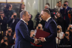 Президент Польши Анджей Дуда 13 декабря привел к присяге новое правительство во главе с Дональдом Туском. По сообщению польской газеты Rzeczpospolita, соответствующая церемония прошла в президентском дворце Варшавы. господин Туск и его команда собрались перед зданием сейма незадолго до начала церемонии. Они приехали на автобусе с надписью «Спасибо, Польша». При этом в состав кабинета Туска вошли 26 министров, 8 министерских кресел заняли женщины. Министром иностранных дел стал Радослав Сикорский, который возглавлял МИД в предыдущем правительстве Дональда Туска. Ранее сейм Польши проголосовал за кандидатуру Дональда Туска в качестве премьер-министра страны. Его поддержала коалиция партий, обладающая большинством голосов в нижней палате парламента: за проголосовали 248 депутатов, против — 201, никто не воздержался. Напомним, что Дональд Туск занимал должность премьер-министра Польши с 2007 по 2014 год. Затем до 2019 года он был председателем Евросовета. Он возглавляет оппозиционную парти