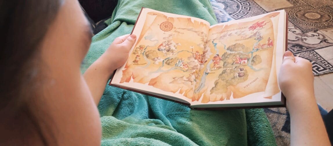 Сегодня знаменательное событие в истории Гриши. Мы прочитали (вместе, 50 на 50) первую в его жизни реально толстую книгу))) Первую книгу из серии про Гарри Поттера. А вот это следующая. Кто угадает, что это за книга? Не про Гарри. Гарри подождёт, пока другой его сородич (?) сходит туда и обратно. Как раз на карту путешествия героя Гриша и смотрит на фото. Конец. --- МИГ. Что это? Это статья, под которой можно по желанию опубликовать фото сегодняшнего дня. Любое. Портрет, пейзаж, натюрморт, не важно. Цель? Остановиться и увидеть жизнь вокруг. Правила: Будьте людьми. Первая статья на тему вот. Подборка на тему МИГ вот. --- Коллективное рисование. Было: Моя: На завтра. Давайте про еду)