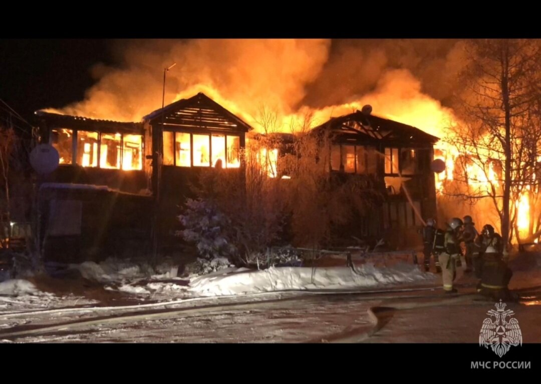 Сегодня в пятом часу утра в пожарную часть Нового Уренгоя поступило сообщение о возгорании двухэтажного многоквартирного деревянного дома по улице Звездная, 42.