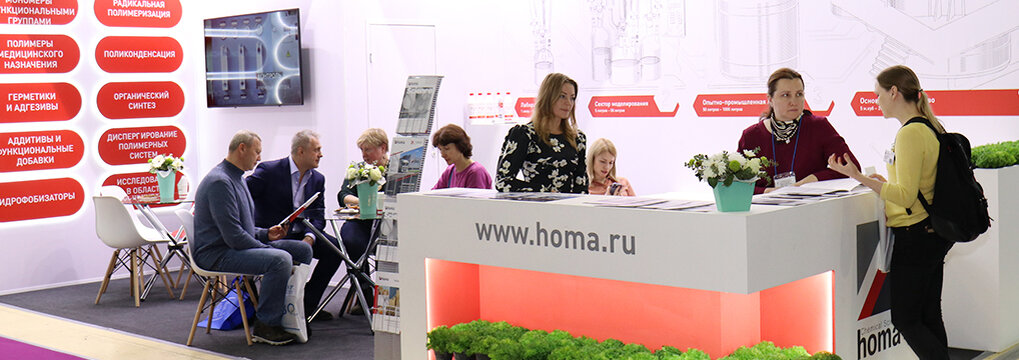«Компания Хома» впервые приняла участие в «Химия-2023» и представила на стенде разработки собственного научного центра – уникальные технологии для лакокрасочной, строительной, автомобильной, мебельной, деревообрабатывающей, упаковочной, целлюлозно-бумажной отраслей промышленности.