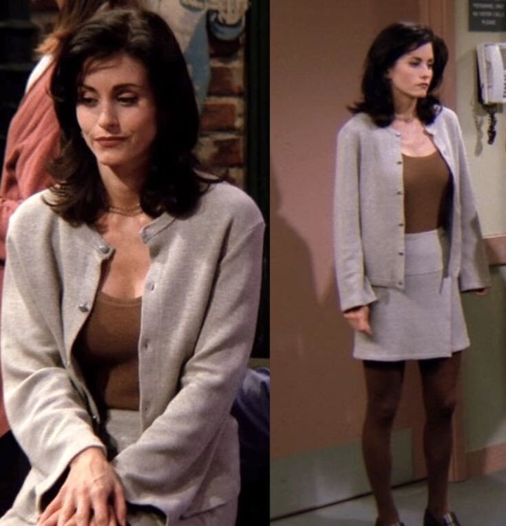 "Друзья" - культовый сериал! Все мы знаем историю любви и перерыва Роса и Рейчел, похотливого Джо с его коронной фразой: "Как дела?", забавного Чендлера, Монику, помешанную на чистоте, и мечтательную Фиби. Но лично меня всегда вдохновлял сериал не только сюжетом, но также модой и стилем персонажей, благодаря которому отражается их характер. Сериал шел десять лет (1994-2004), и отразил эпоху стиля тех времен во всех персонажах. Хотя именно Рейчел Грин вспоминается, как самая модная девушка сериала, но у каждого персонажа был уникальный гардероб, разработанный в соответствии с его индивидуальностью. Моника Геллер не исключение. Зная характер Моники, она придерживалась строгости и консервативности, наряды были удобные, практичные и не кричащие. Однотонный повседневный костюм, говорит о том, что Моника любит комфорт и, в то же время, простоту, но выглядит чертовски стильно. Часто на Монике можно было заметить объемный вверх и узкие джинсы - хит 90-х. Но мне это напоминает и сегодняшний л