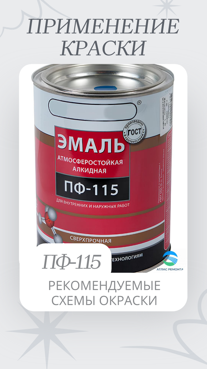 Про технические характеристики краски и её состав читайте здесь: https://dzen.ru/media/id/64c2c29fcbd9e709158a048a/emalevaia-kraska-pf115-tehnicheskie-harakteristiki-i-sostav-657899b3b9a3492d9cb6c241