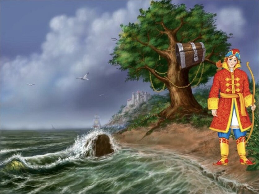 44 Только сел Ванюша в лодку, Как туман поднялся. И один в кромешной мгле Сразу оказался. Парус лодки был надут, Только ветра нету. Волны вдаль его несут, Словно по навету. Далеко ли, близко ли, Не понятно Ване, Только ему слышно лишь Как за бурунами Море плещет о песок, И на берег носом Лодку бросил ветерок, Прям перед утёсом. И мгновенно тот туман В тишине растаял, На песок сошёл Иван, Он совсем не чаял, Увидать высокий дуб, На цепях средь веток Там висел большой сундук, Разных был расцветок. 28.10.2023