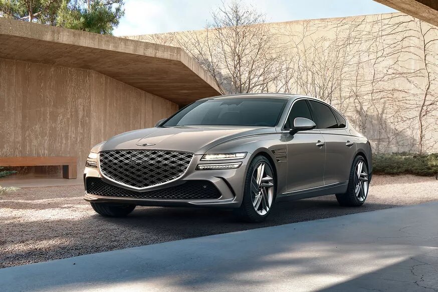 А вот внешне четырехдверка мало изменилась. Подробности о технике обновленной модели раскроют позже. Седан Genesis G80 актуального поколения в строю с 2020 года. Созданная на заднеприводной платформе модель в целом получилась удачной. В частности, в родной Корее (премиум-бренд Genesis принадлежит компании Hyundai) четырехдверка возглавляет личный зачет марки: по итогам 11 месяцев 2023-го реализовано 41 107 шт., тогда как, например, импортный Mercedes-Benz E-Class за тот же период разошелся тиражом 22 209 экземпляров. И вот пришло время рестайлинга. Марка пока опубликовала лишь несколько изображений модернизированного G80, полноценную презентацию проведут позже. Внешне седан мало изменился. На радиаторной решетке красуется двойная сетка, как у обновленного кроссовера Genesis GV80; также освежили бамперы, вдобавок патрубки выпускной системы теперь спрятаны. Четырехдверка сохранила фирменную двухполосную оптику, при этом у фар и ходовых огней другая диодная начинка. Наконец, модель получи