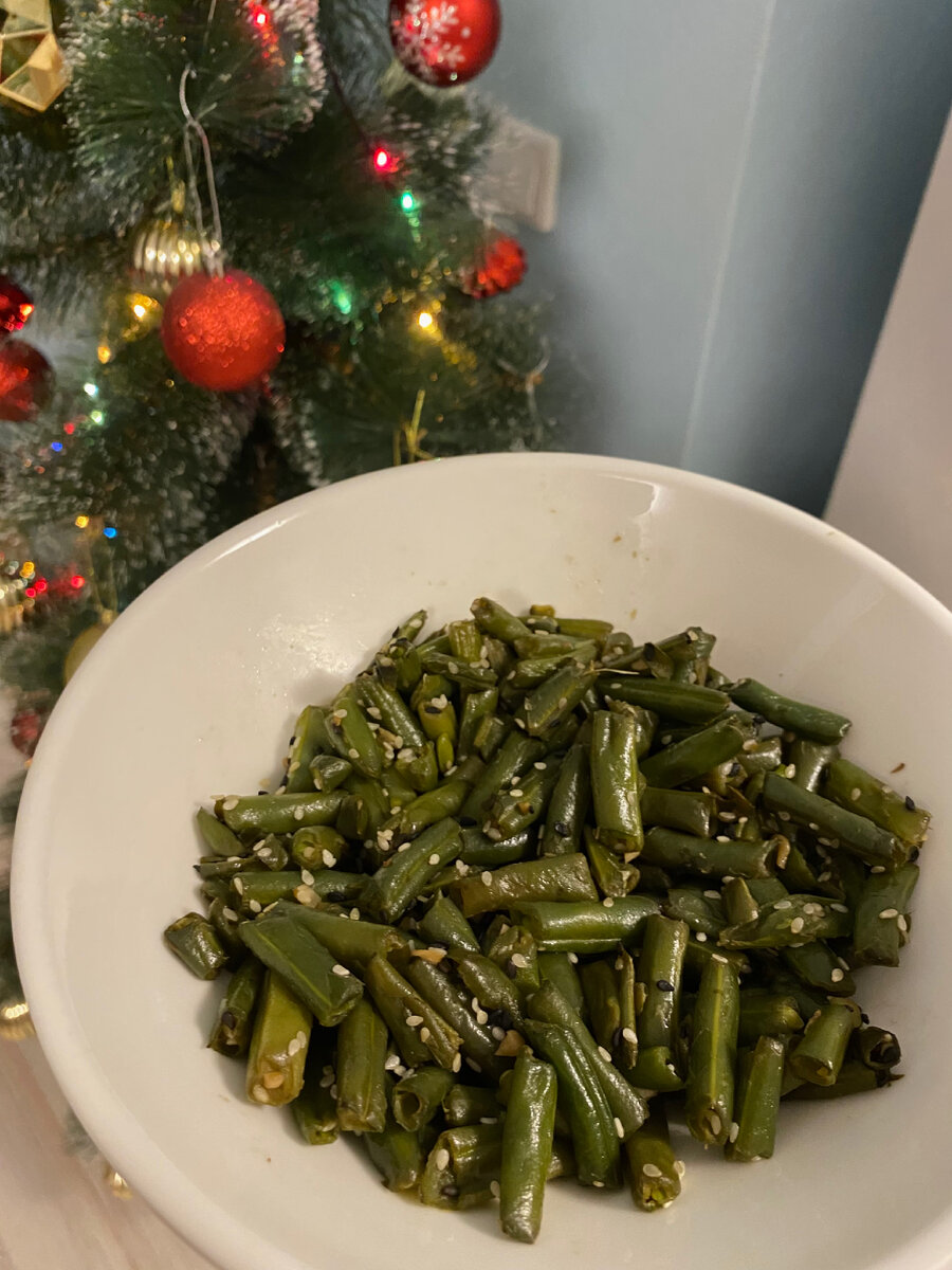 ИНГРЕДИЕНТЫ фасоль стручковая 400 г масло сливочное 1 ст.л масло растительное 1 ст.л чеснок зубчики 3 шт соус соевый ~ 2 ст.л семена кунжута ~ 1 ст.л соль по вкусу Приготовление: 1. В большую кастрюлю наливаем воду, слегка подсаливаем ее и доводим до кипения. Всыпаем стручковую фасоль (у меня замороженная) и варим после закипания 2 минуты. 2. Далее фасоль промываем ледяной водой, обсушиваем или просто даём стечь лишней жидкости. 3. В сковороде разогреваем растительное и сливочное масло, кладем нарезанный мелким кубиком чеснок и, помешивая, жарим его в течение 1-2 минут до слегка золотистого цвета. 4. Затем в сковороду добавляем стручки фасоли, вливаем соевый соус и жарим на сильном огне фасоль еще 3-5 минут (жидкость должна испариться). 5. Добавляем семена кунжута, все ингредиенты тщательно перемешиваем и можно подавать на стол.