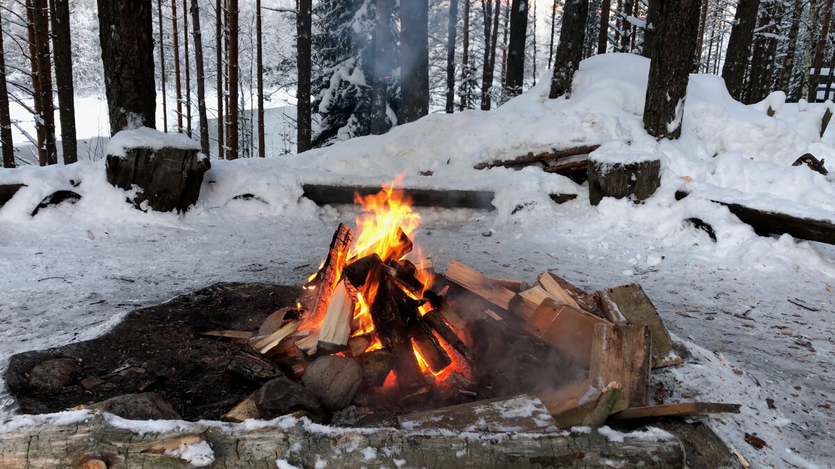 Идея для ночевки: в Карелии можно найти оригинальные варианты для проживания – разного рода романтичные трэвел-хижины. Например, в «Карьяла парке» есть вот такой вариант. Интересно, что внутри тепло даже в жесткий мороз: работают теплый пол и батареи. Есть кровать, чайник, а вот удобств, увы, нет. Они находятся в отдельном помещении неподалеку. Зато – какой шикарный вид на лес и речку!