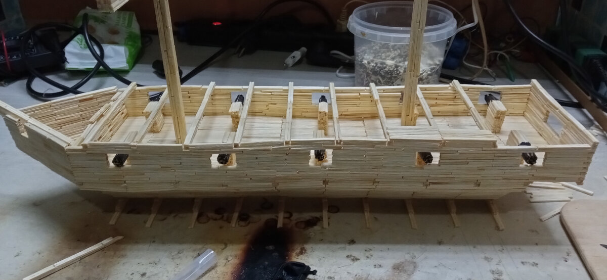 Далее начинается самый долгий этап строительства- пол палубы(уйдет много много спичек!!!!)