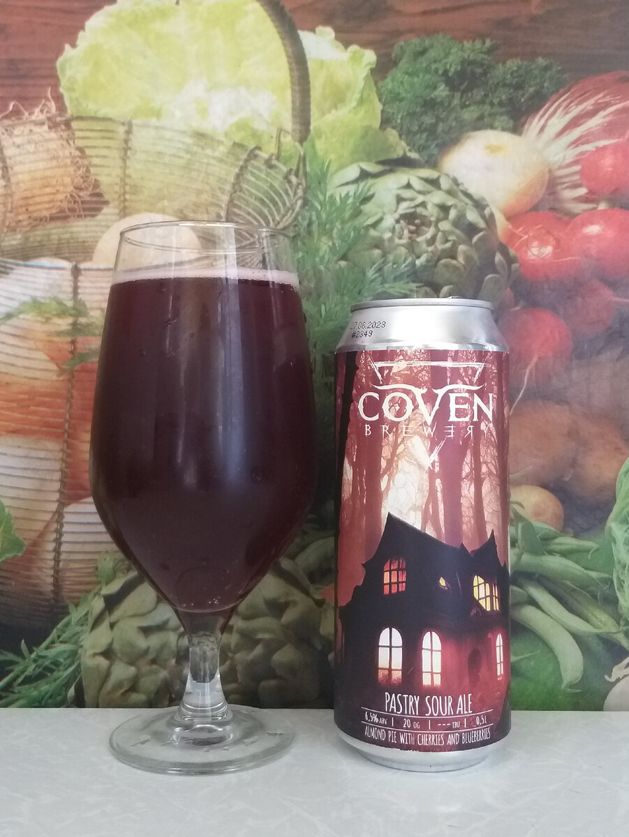 На канале очередной обзор крафтового пива от COVEN BREWERY. Это известная крафтовая пивоварня из подмосковных Мытищ, которая варит пиво с 2019 года. Название переводится с английского как "шабаш ведьм". За короткий промежуток времени пивоварне удалось добиться больших успехов в пивоварении и стать одной из значимых крафтовых пивоварен в нашей стране. В линейке у пивоварни самые разнообразные сорта пива, на любой вкус. Большое количество экспериментальных сортов. Основатель пивоварни Julia Juliasferato в прошлом популярный пивной блогер в Инстаграм. На моём канале уже вышло несколько обзоров, посвящённых пиву этой крафтовой пивоварни. Вот ссылка для просмотра этих материалов. Сегодня у меня очередной пивной напиток из экспериментальной линейки кондитерских элей. "End of the Beginning" Пивной напиток нефильтрованный непастеризованный Состав: вода подготовленная, солод (ячменный, пшеничный), хмелепродукты, пюре вишни, пюре черники, экстракт миндаля, мёд натуральный, овсяные хлопья, аромат