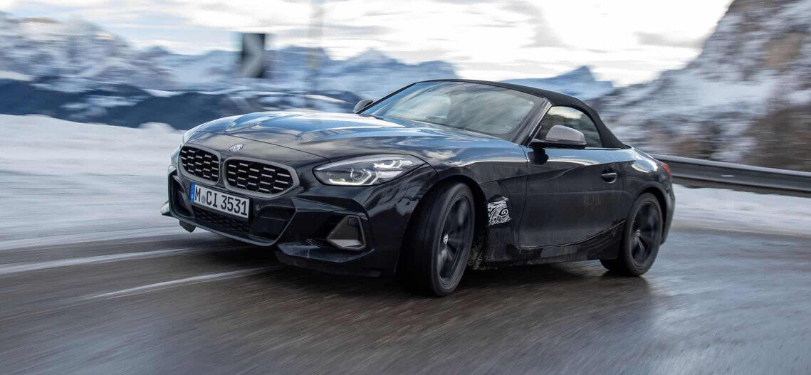 После многих лет слухов компания BMW наконец подтвердила планы установить механическую коробку передач в Z4 M40i. Родстер M Performance с педалью сцепления был разработан в первую очередь для США. Однако есть планы продавать спортивный кабриолет с ручной коробкой передач и на других рынках. Здесь можно увидеть европейскую версию «аналога» Z4 M40i с немецким номерным знаком во время испытаний в Доломитовых Альпах. Шестиступенчатая механическая коробка передач ZF, адаптированная BMW, будет доступна в Германии, но информация о других рынках пока не объявлена. В то время как прототип американской версии был окрашен в матовый цвет Frozen San Remo Green, на этот раз он выполнен в простом цвете Sapphire Black. У него нет оранжевых боковых маркеров, обязательных в Северной Америке, и установлен другой комплект колёс с зимними шинами. BMW решила убрать значки Z4 и M40i с крышки багажника и нанесла камуфляж на лого. Это не так уж удивительно, поскольку прототипы обычно претерпевают эти изменения