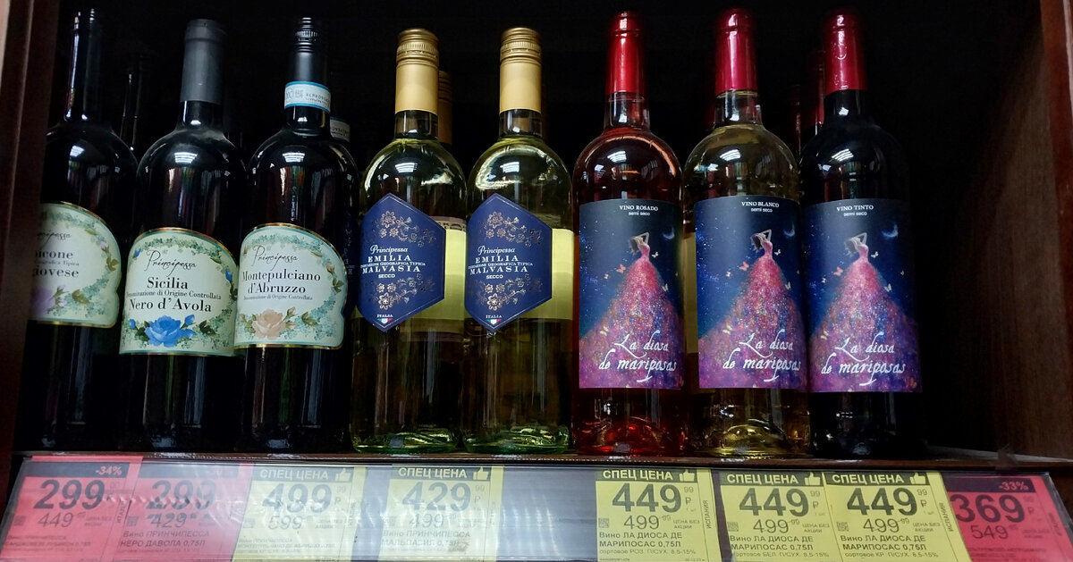 А на нижней полке, на которой расположились итальянские недорогие вина, ценники и вовсе отклеены: