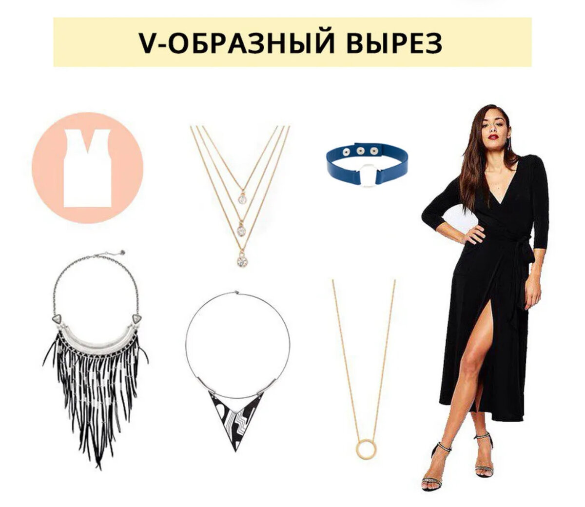 Какие украшения надеть под V-образный вырез? Подойдут: