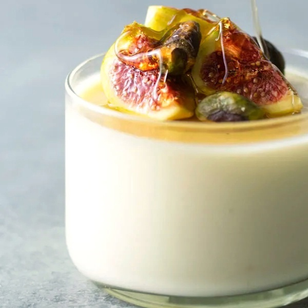 Ингредиенты/6-8 порций: 2 стакана жирных сливок, 2/3 стакана, ¼ чайная ложка соли, 1 стакан нежирного кефира, 2 ч.л порошкового желатина, ¼ чайной ложки цедры апельсина, 100 г мягкого козьего сыра комнатной температуры, ½ стакана фисташек, 2 ч.л топленого несоленого сливочного масла, мед.