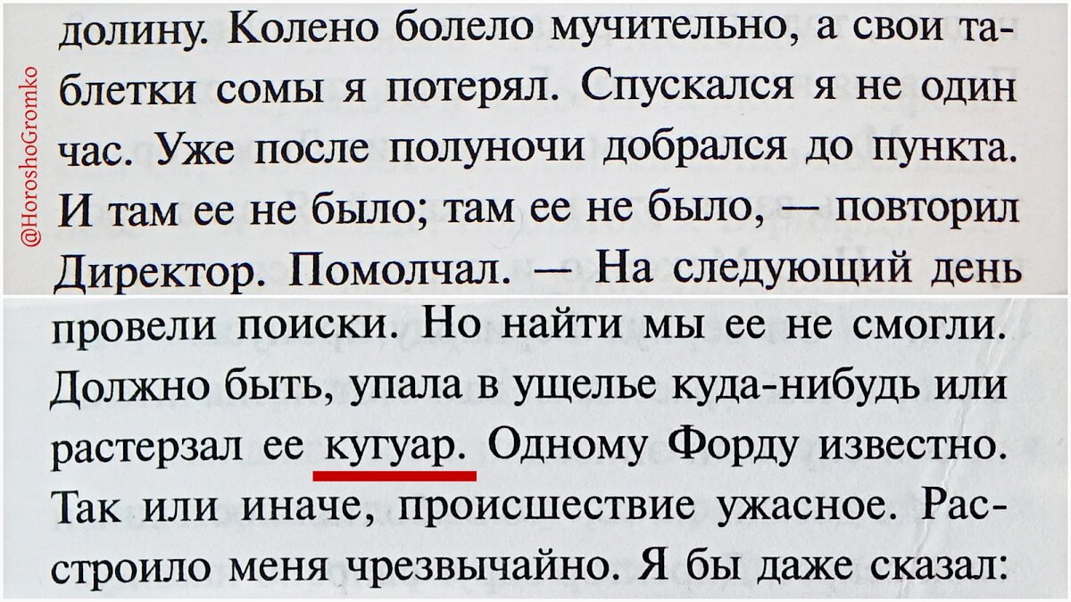 Вычитала в “Дивном новом мире” Хаксли новое слово - кугуар! Это из той части романа, когда главный герой Бернард Маркс собирается в резервацию к диким племенам, и обсуждает поездку со своим начальником, Директором Инкубатория. Директор и сам в молодости ездил в резервацию, но его поездка закончилась плохо. Он был с девушкой, молодые люди поднялись в горы и устроили пикник, после которого Директор задремал, а его подруга, видимо, решила прогуляться и попала в беду. Так или иначе, когда Директор проснулся, её рядом не было, поиски результата не дали. Вероятно, девушку съел кугуар. На самом деле девушка не погибла, её спасли дикари, привели к себе в деревню, она оказалась беременной и в положенный срок родила сына - того самого Дикаря Джона. Но нас сейчас интересует не она, а слово - кугуар. Что такое кугуар? Это пума! Кугуаром её называют южноамериканские индейцы, а ещё пуму зовут горным львом. По-английски, например, чаще говорят именно так, mountain lion (картинка из Википедии). В