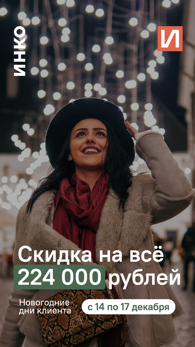 Мы рады сообщить вам о запуске "Новогодних дней клиента" от компании ИНКО! С 14 по 17 декабря у вас есть уникальная возможность поставить бронь на любую квартиру в ЖК «Ария», АП «Опера», КУ «Маэстро» со скидкой в размере 224 000р А чтобы сделка стала еще более привлекательной, успейте выйти на нее до конца декабря! Вас ждут не только выгодные условия, но и атмосфера праздника в наших офисах: согревающий глинтвейн, имбирные пряники и отличное настроение! Успейте стать счастливым обладателем квартиры от ИНКО и позвольте себе исполнить свою новогоднюю мечту! Скорее успевайте воспользоваться акцией, а мы будем рады ответить на все ваши вопросы +7 (3452) 53-80-01 |акция распространяется только на ЖК «Ария», АП «Опера», КУ «Маэстро»| > скидки не суммируются с текущими акциями #твойинко