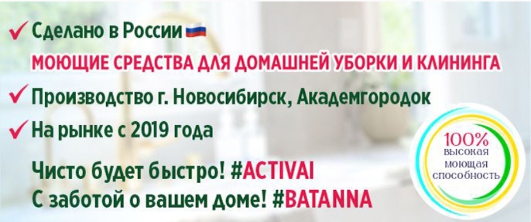 Мы - компания - производитель. Создаем и продаем профессиональные концентрированные моющие средства под собственным брендами Activai PROFESSIONAL и БАТАННА BATANNA 📍Место производства: знаменитый и крупнейший научный центр страны - Академгородок, г. Новосибирск 📍 Продаем по всей России 🚀 Бесплатная доставка при заказе на OZON, WILDBERRIES и Яндекс маркете Самый частый комментарий, которые мы слышим: - "Ваши средства отмыли то, с чем другие не справлялись!" Так и есть! Высокая моющая способность - это отличительное и фирменное свойство наших моющих средств. Кратко о том, как много могут и для чего предназначены наши продукты: ✅ Отмыть жир, самый застарелый и въевшийся, очистить вытяжку, матовые фасады и микроволновку с холодильником ✅ Спасти от известкового налета сантехнику, очистить от ржавчины, плесени и грибка ванну, санфаянс, душевую кабину или бассейн ✅ Отмыть пластиковые подоконники и откосы от труднодоступных скоплений грязи и пыли ✅ Убрать стойкий налет от нико