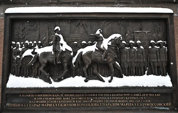 Про то, что произошло, уже все знают. Утром 12 декабря было замечено, что на горельефе «Парад Победы» (там изображены выдающиеся полководцы Константин Рокоссовский и Георгий Жуков, восседающие на конях во время Парада Победы 1945 года)... Так вот, на горельефе отсутствовала голову коня Константина Рокоссовского, прозванного Полюсом. Её отпилили. Коня маршала Жукова, к счастью, оставили нетронутым. Сколько конь простоял без головы - не известно. "Головосносительство" заметили, потому что на обрубок шеи некто положил две красные гвоздики. Скорее всего, специально. Возможно, именно потому, что до сих пор это было незамеченным. Совсем недавно мы писали о том, как на Красной площади были задержаны женщины, поедающие красную икру: И, казалось бы, стражи порядка в столь значимом для всей страны месте не спит, - бдит! Как же тогда было возможно отпилить голову с горельефа? Во-первых, это сложно. Тут и инструмент нужен специальный. И шумен этот инструмент... Как можно было не услышать? Горел