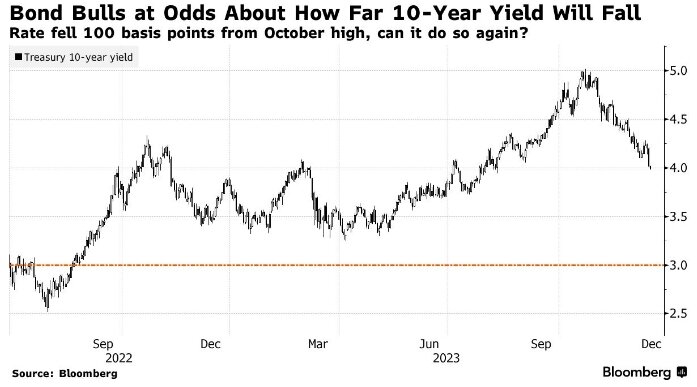 Линии тренда указывают на большие возможности для падения доходности: Гундлах. Гросс считает, что доходность по 10-летним облигациям останется на текущем уровне около 4% Некоторые из крупнейших имен в мире облигаций расходятся во мнениях относительно того, насколько далеко могут вырасти казначейские облигации теперь, когда Федеральная резервная система сигнализировала о повороте в сторону снижения процентных ставок. Джеффри Гундлах из DoubleLine Capital говорит, что доходность по 10-летним облигациям США упадет до диапазона около 3%, поскольку центральный банк, скорее всего, снизит целевую ставку на два процентных пункта в следующем году. Бывший король облигаций Pimco Билл Гросс отверг такую эйфорию, заявив, что доходность стабилизируется возле 4%. «Мы сломали линии тренда, и есть много пространства для движения» ниже текущего уровня доходности 10-летних облигаций, сказал Гундлах в интервью. «Экономика не дотянет до спада, и это вызовет ответную реакцию. Нам придется печатать много д